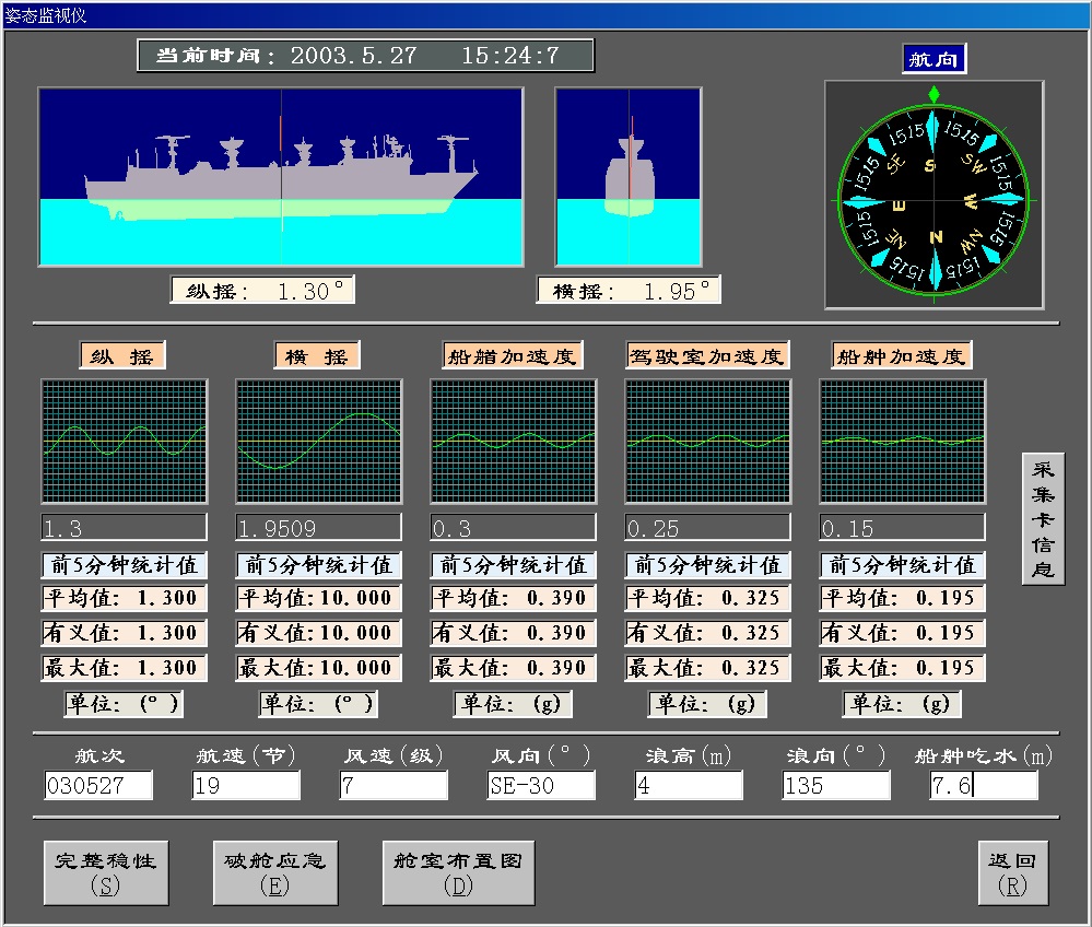 开发完成船舶航行安全综合监测技术平台,建立性能试验数据采集分析系统、船舶配载计算系统、船舶实时装载监测系统等子平台;技术具有广泛的应用价值,已用于我国主要港航、造船企业的多型运输船舶,实时保障了船舶航行安全;同时在船舶耐波性研究、安全泊稳研究、水工试验研究及动力定位试验研究中发挥重要作用。